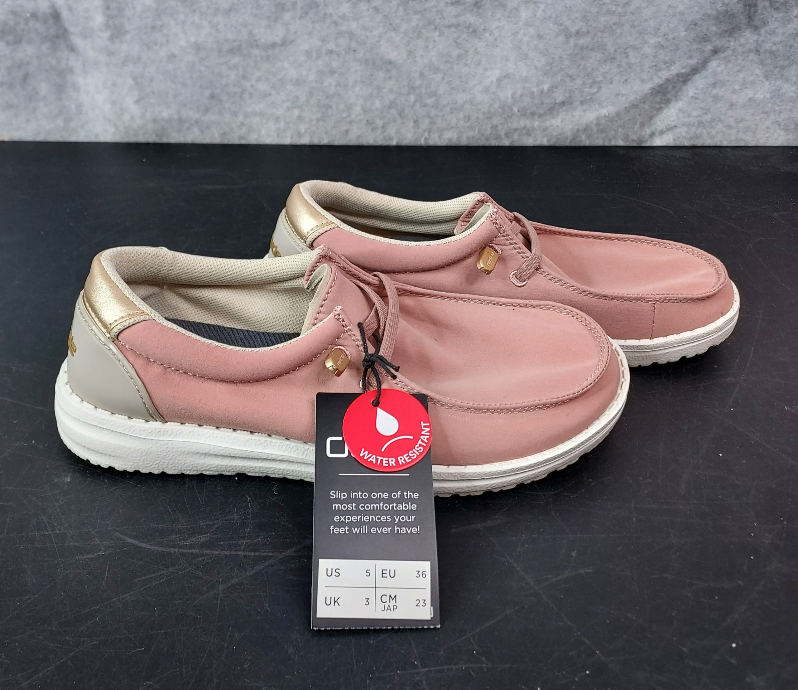 Step into comfort and confidence with the Hey Dude Wendy Adventure Slip-Ons—designed for women who love effortless style with go-anywhere performance. These lightweight shoes feature a water-resistant upper that helps keep your feet dry in unpredictable weather, making them perfect for outdoor errands, travel, or everyday wear. Built with Hey Dude’s signature flex-and-fold technology, they offer unmatched flexibility and cloud-like comfort with every step. The cushioned insole provides all-day support, while the easy slip-on design with adjustable elastic laces ensures a secure yet relaxed fit. Whether you're heading out for a weekend adventure or slipping into something comfy after a long day, the Wendy Adventure delivers the perfect blend of practicality and laid-back style.