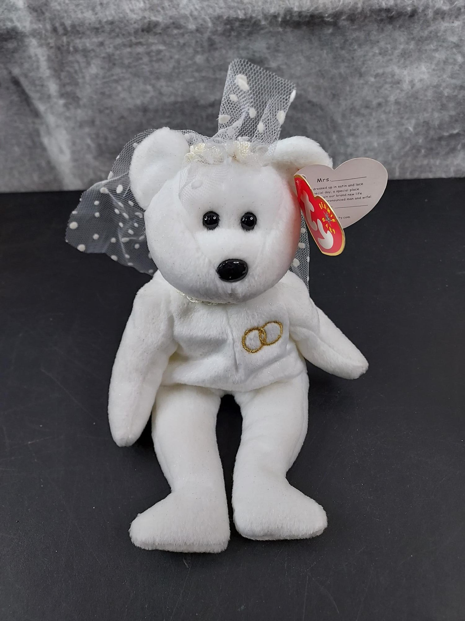 Celebrate love and togetherness with the charming TY Mr. & Mrs. Beanie Baby Bears. This adorable plush duo is designed to capture the sweetness of a happy couple, making it a perfect gift for weddings, anniversaries, or anyone who appreciates cute collectibles. Each bear is crafted with TY’s signature soft plush fabric and filled with high-quality beans that give them a huggable, slightly weighted feel. Mr. Bear is dressed in a classic, dapper style, while Mrs. Bear features elegant detailing that highlights her bridal charm. Their coordinated look makes them a delightful display piece when placed side by side. Compact and lightweight, these Beanie Babies are ideal for collectors, gift baskets, or decorative accents in a bedroom, nursery, or office. As part of TY’s beloved Beanie Baby collection, they also hold nostalgic appeal for longtime fans and collectors alike.